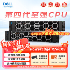 戴尔(DELL)PowerEdge R750XS/R760XS/R760 2U机架服务器主机深度学习虚拟化数据库存储人工智能刀片式整机 R760XS(1*银牌4410Y 12核24线程) 16G内存丨2*2T SATA丨800W